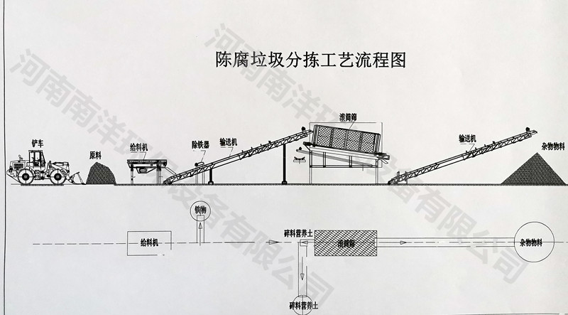 陳腐垃圾處理生產(chǎn)線主要用于城市多年填埋的非正規(guī)陳腐生活垃圾分選,也可用于新鮮生活垃圾集中地的垃圾分選。垃圾分選處理設(shè)備可將生活垃圾分選成可燃物、有機(jī)土、再生利用物
